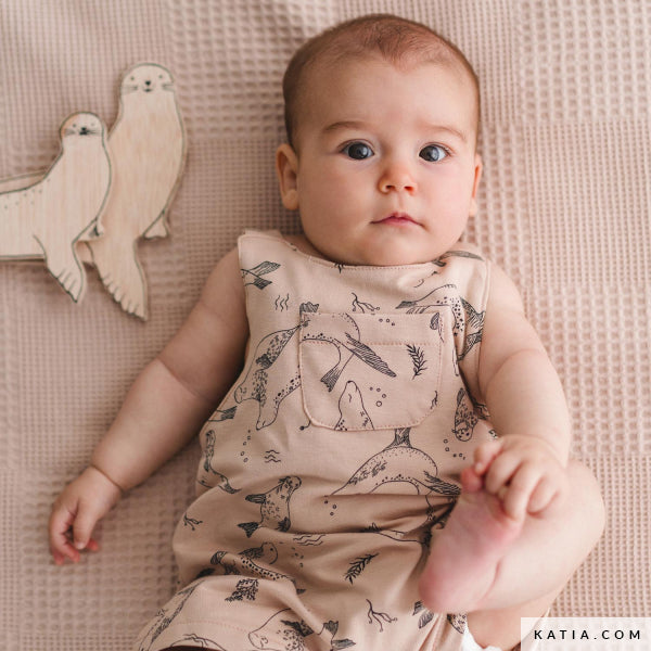 Descubre la ternura marina de la felpa de verano Sea Lions Swimming de Katia Fabrics, con un delicado estampado de leones marinos nadando entre burbujas y algas sobre un fondo beige suave. Un diseño encantador y relajante, ideal para los más pequeños. Esta tela de felpa fina es perfecta para coser sudaderas ligeras, pantalones cómodos, conjuntos infantiles o pijamas de entretiempo. Gracias a su composición en algodón y su suavidad al tacto, ofrece comodidad, transpirabilidad y libertad de movimiento. Consejo de costura: Utiliza aguja jersey o stretch y puntadas elásticas para mantener la flexibilidad del tejido.