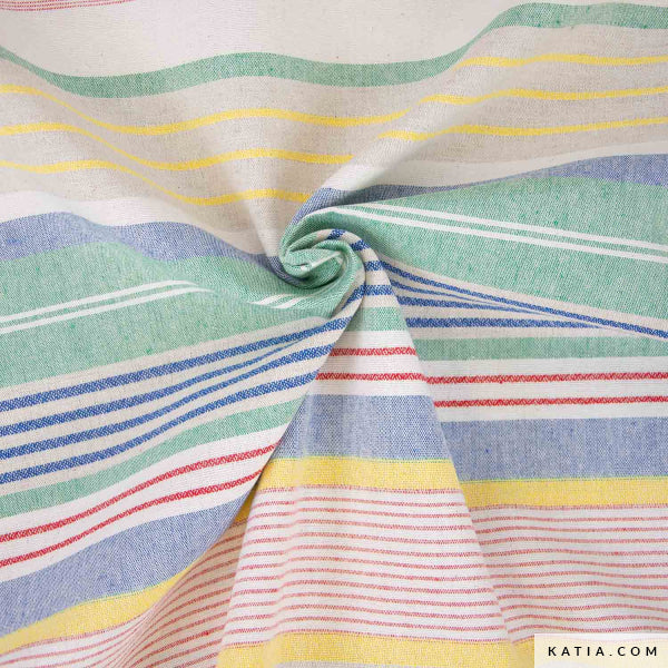 Llena tus proyectos de frescura y originalidad con la loneta reciclada Salinas. Un tejido resistente y con cuerpo, decorado con un alegre diseño de rayas multicolores. Perfecto para confeccionar bolsos, mochilas, accesorios de hogar o prendas con carácter. Apuesta por esta loneta reciclada y añade un toque sostenible a tus creaciones.